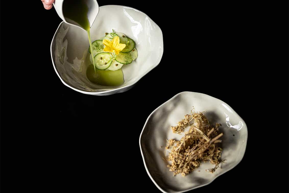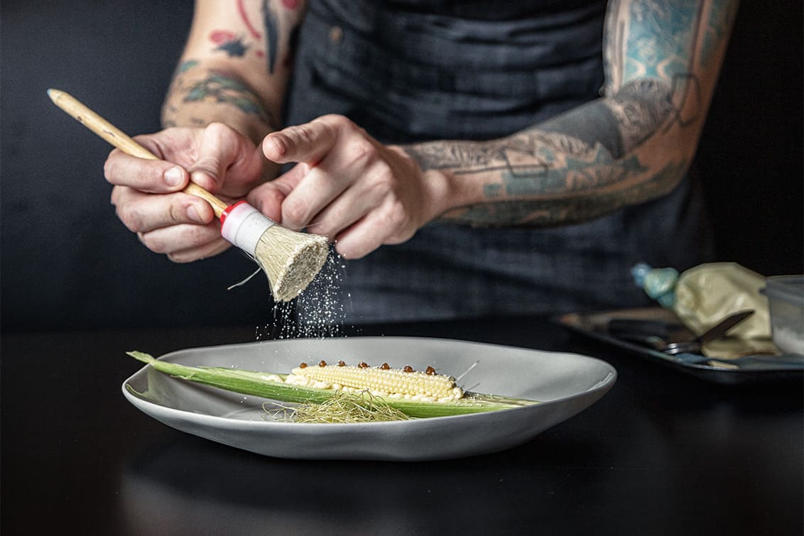 Es folgen verschiedene Stages in Großbritannien und in Dänemark: bei Isaac McHale im Londoner Clove Club, bei Simon Rogan im L’Enclume und im Amass bei Matt Orlando, der davor Sous Chef im legendären noma war.